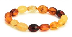 Piękna, elegancka bransoleta wykonana z ze starannie oszlifowanych brył bursztynu w kolorach: koniakowym, wiśniowym, cytrynowym oraz mlecznym.