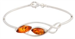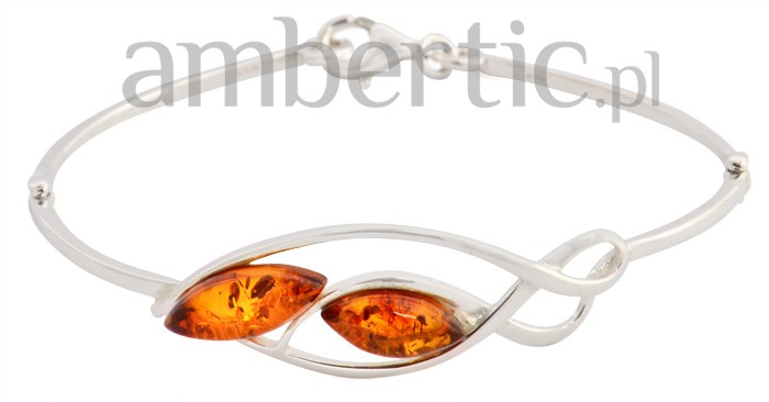 Niezwykle gustowna bransoleta wykonana z najwyższej jakości srebra udekorowanego soczewkami naturalnego bursztynu w kolorze koniakowym.